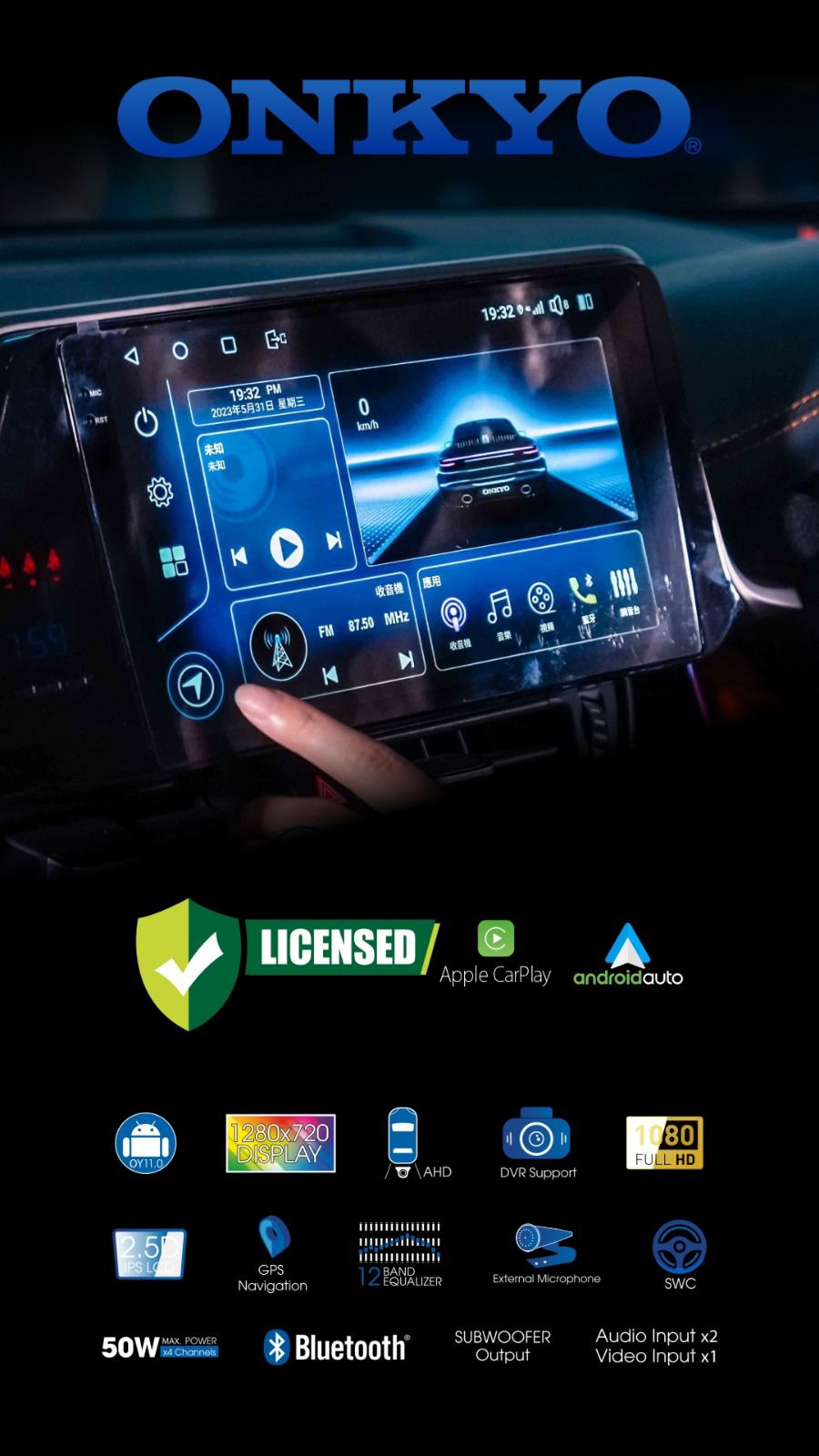 - Licensed Android Auto & Apple car play with Android 13